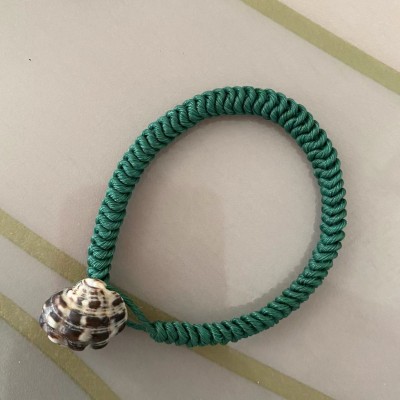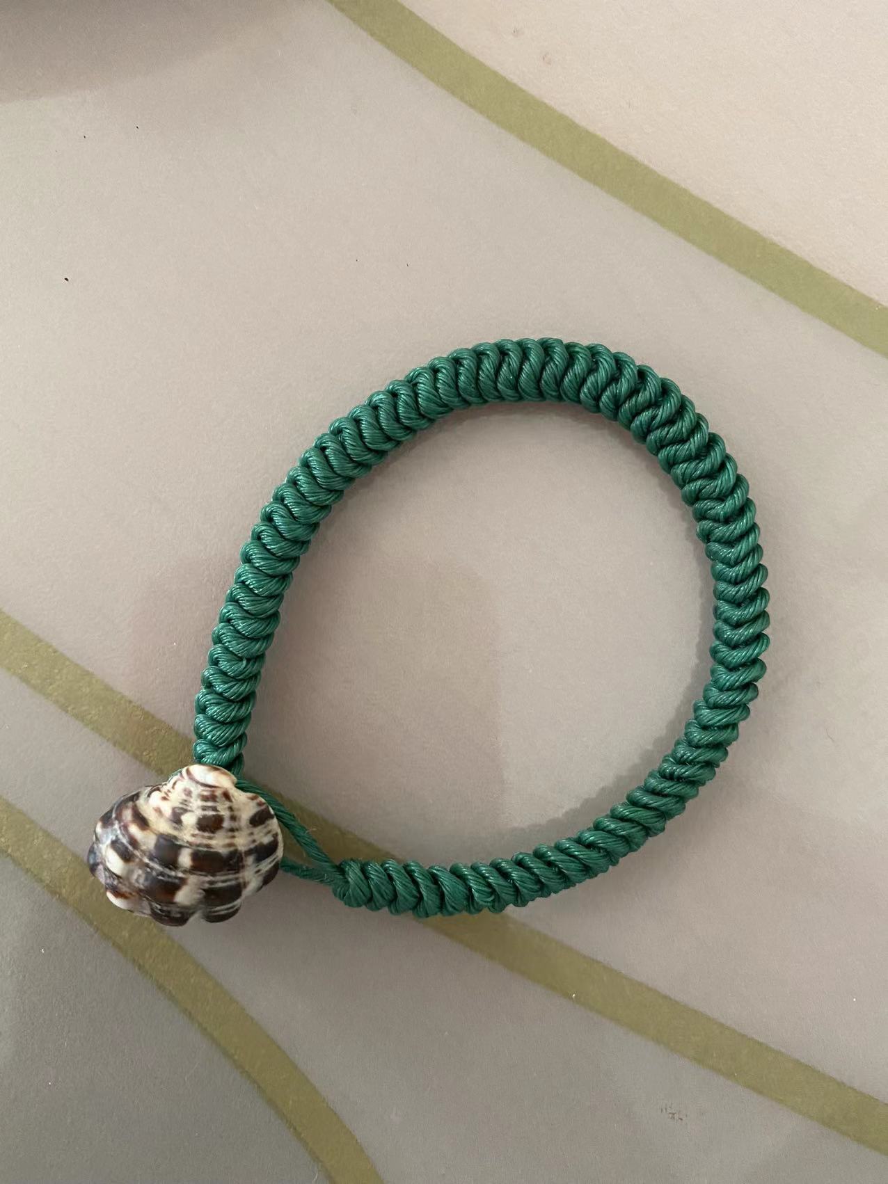 The artist salvaged discarded fishing nets and conches from the ocean. After deep cleaning, disinfection and design, made a unique bracelet by hand weaving.