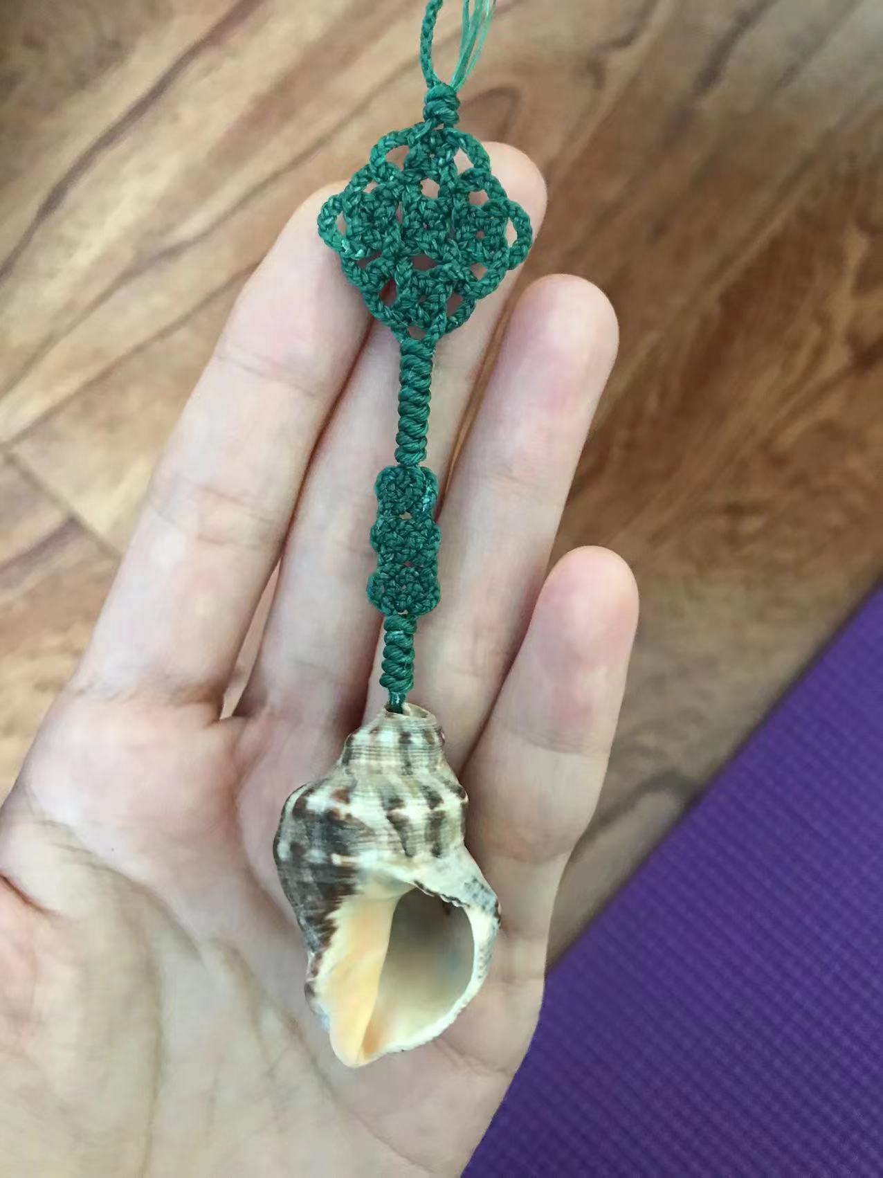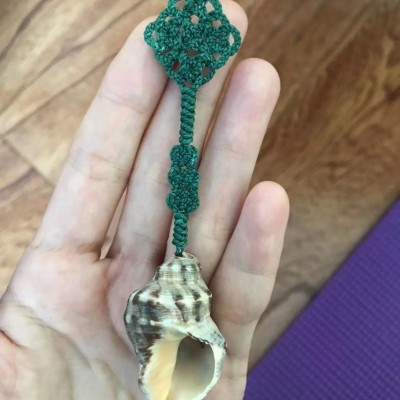 The artist salvaged discarded fishing nets and conches from the ocean. After deep cleaning, disinfection and design, made a unique pendant by hand weaving.